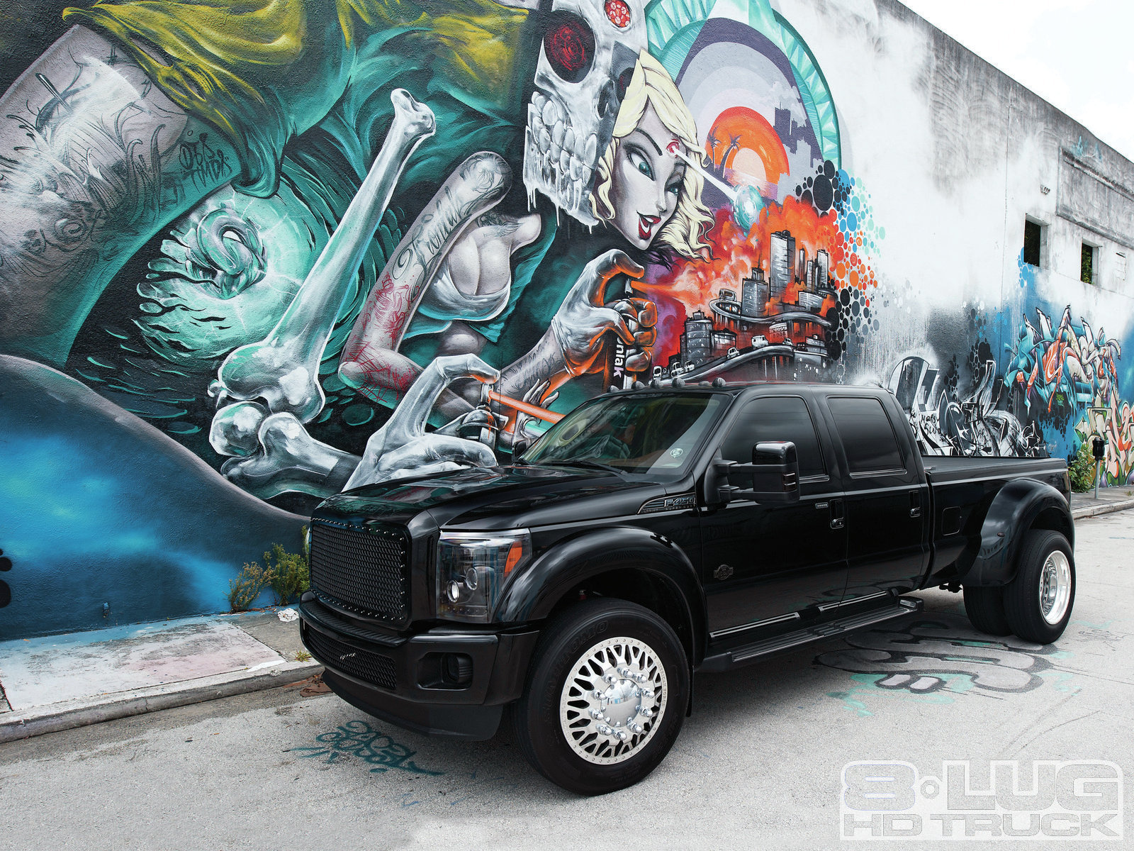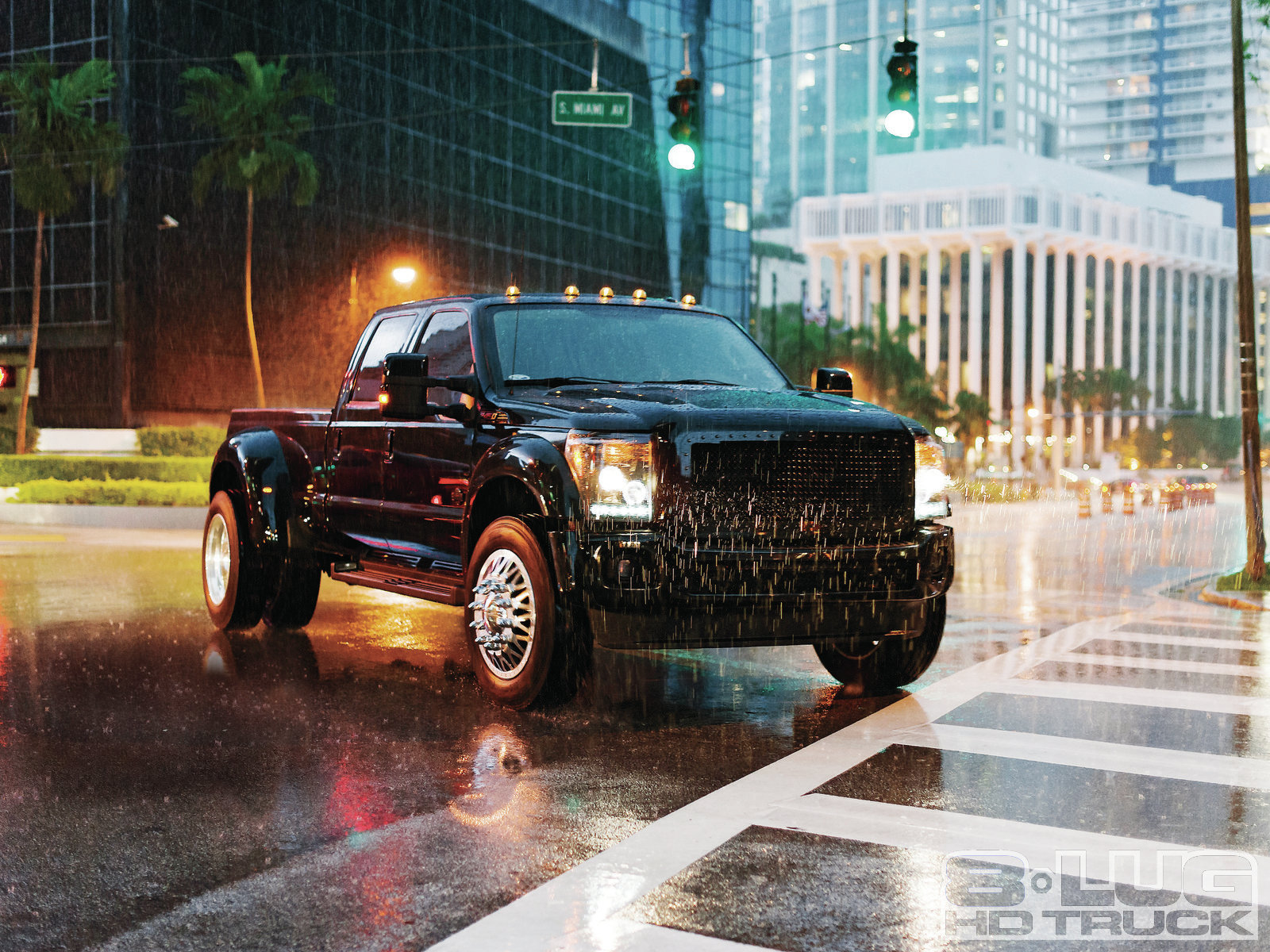 Joseph Safina of Fort Lauderdale, Florida, is a professional race car driver currently running in the Grand Am Rolex series. He went out looking for an all-black ’11 Ford F-450 4×4 King Ranch pickup and couldn’t find one—the local dealer said it would take months to get one. So he bought a green and tan two-tone truck that he found on the Internet and drove it home from Virginia to his shop (Safina Performance) in Florida.